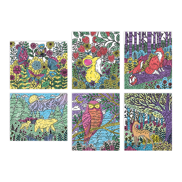 Grazie alla speciale tecnica “magic painting”, basta passare il pennello con acqua per far apparire colori e dettagli nascosti delle scene della foresta. Un’attività semplice e rilassante che stimola concentrazione, manualità fine e immaginazione, trasformando il gioco in un momento di benessere.