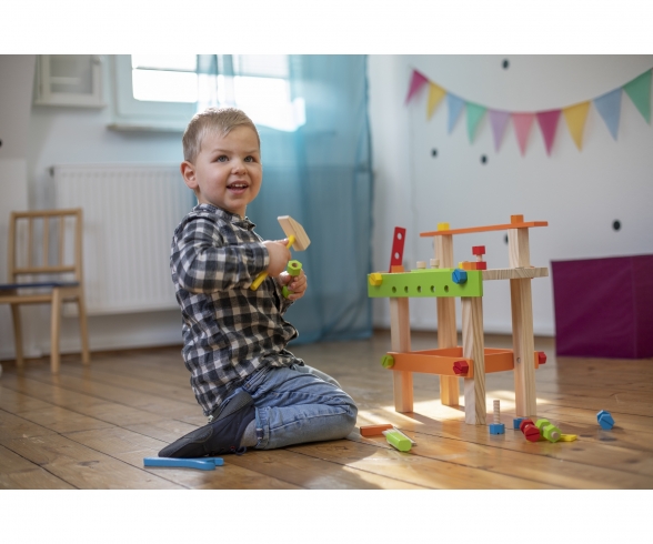 Con il banco da lavoro in legno, ogni progetto diventa un gioco creativo e ogni giorno un’occasione per imparare divertendosi!