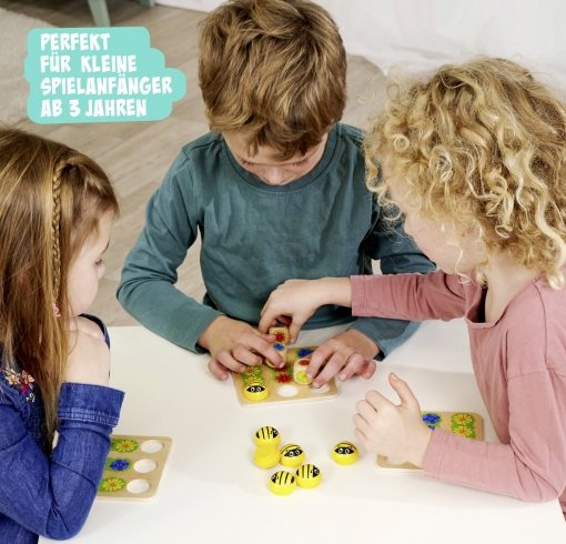 Il materiale da gioco in legno di alta qualità convince non solo per i suoi colori allegri, ma è anche resistente e ideale per le manine dei bambini piccoli. Allo stesso tempo i più piccoli imparano ad assegnare i colori, a contare e a provare, il tutto divertendosi! Le semplici regole rendono facile iniziare subito e garantiscono che ogni round sarà un completo successo.