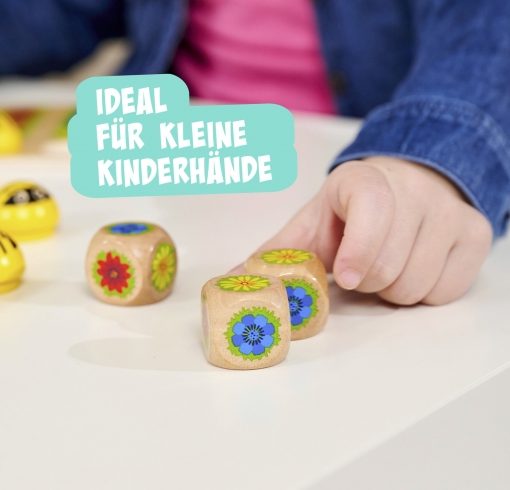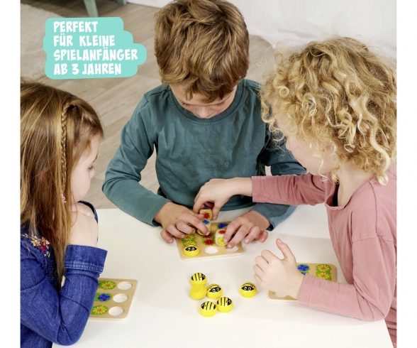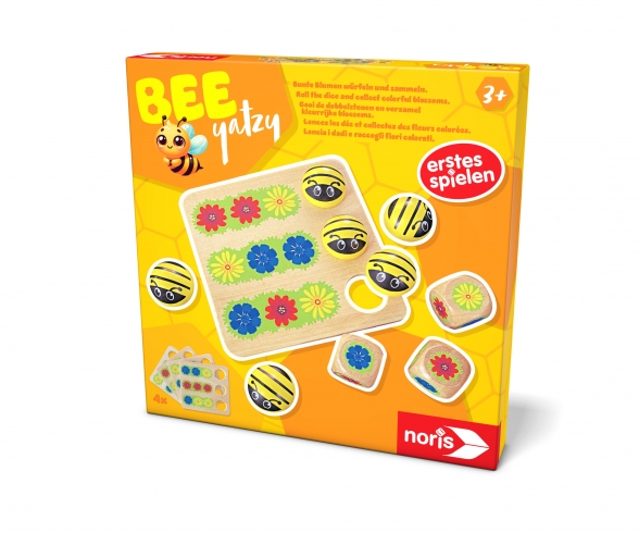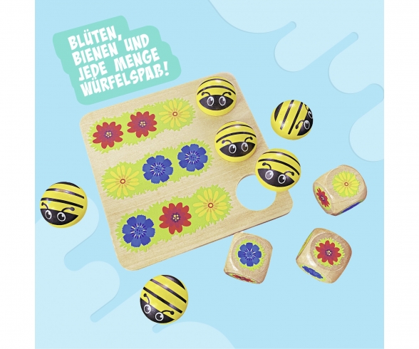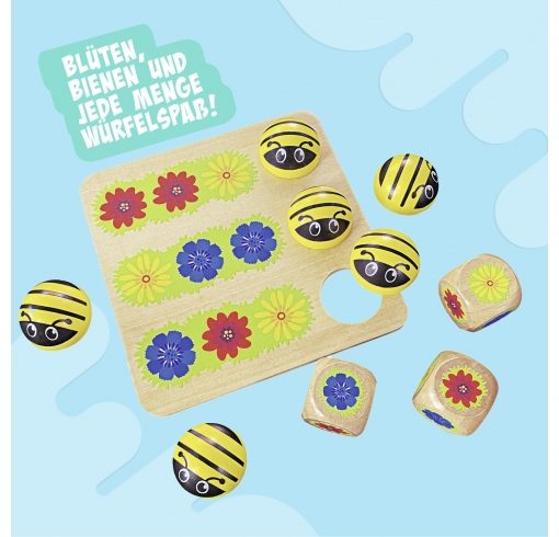 “Bee Yatzy” parla di fiori, api e tanto divertimento con i dadi. I bambini dai 3 anni in su provano a creare le giuste combinazioni di fiori con i dadi e posizionano le loro api sul campo da gioco. Ogni lancio porta nuove emozioni: chi metterà per primo tre api sul tabellone e vincerà la partita?
