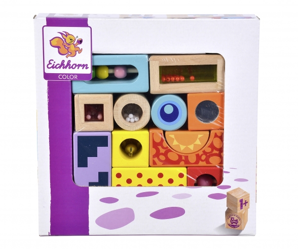 I 12 blocchi sonori di Eichhorn Color sono disponibili in diversi colori e forme.