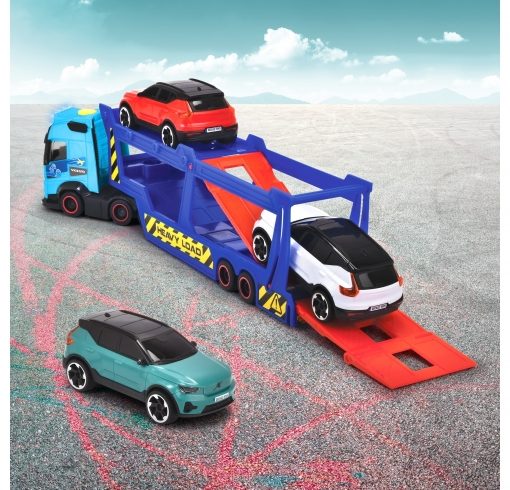 Proprio come il suo grande originale, il camion giocattolo Volvo FH 16 con licenza combina enorme potenza e comfort ed è quindi un popolare trattore per carichi pesanti – in questo caso per il trasporto di 3 macchinine Volvo del modello XC40 Recharge! Ma non preoccupatevi: ragazze e ragazzi dai 3 anni in su possono caricare sulla bisarca anche i propri modellini di auto. Abbassando la rampa posteriore e la rampa di accesso al livello superiore, le auto sul rimorchio per camion a 2 piani possono essere facilmente parcheggiate e smontate.