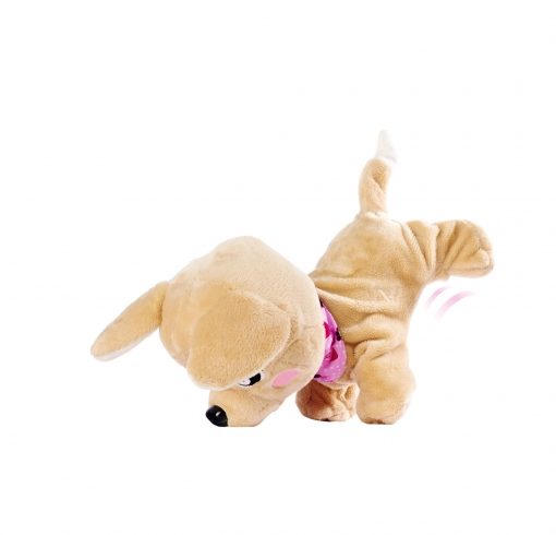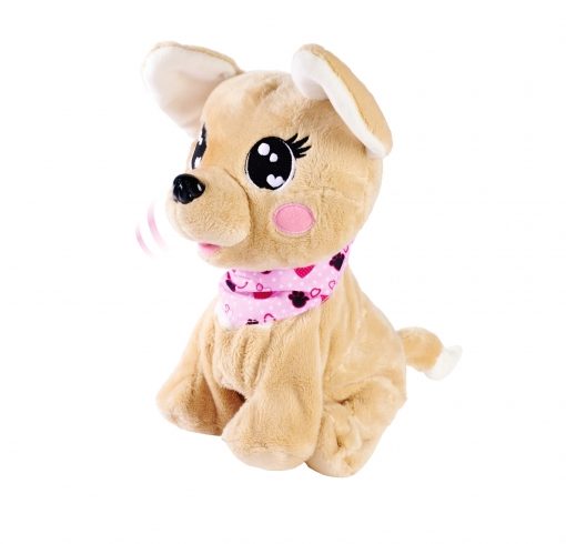– Reagisce alla voce – il cucciolo di Chihuahua ascolta i comandi dei bambini e reagisce alla voce come un vero cane. Si siede, si mette a sedere, si alza sulla testa e può anche cantare. Risponde a un totale di 12 comandi vocali diversi.