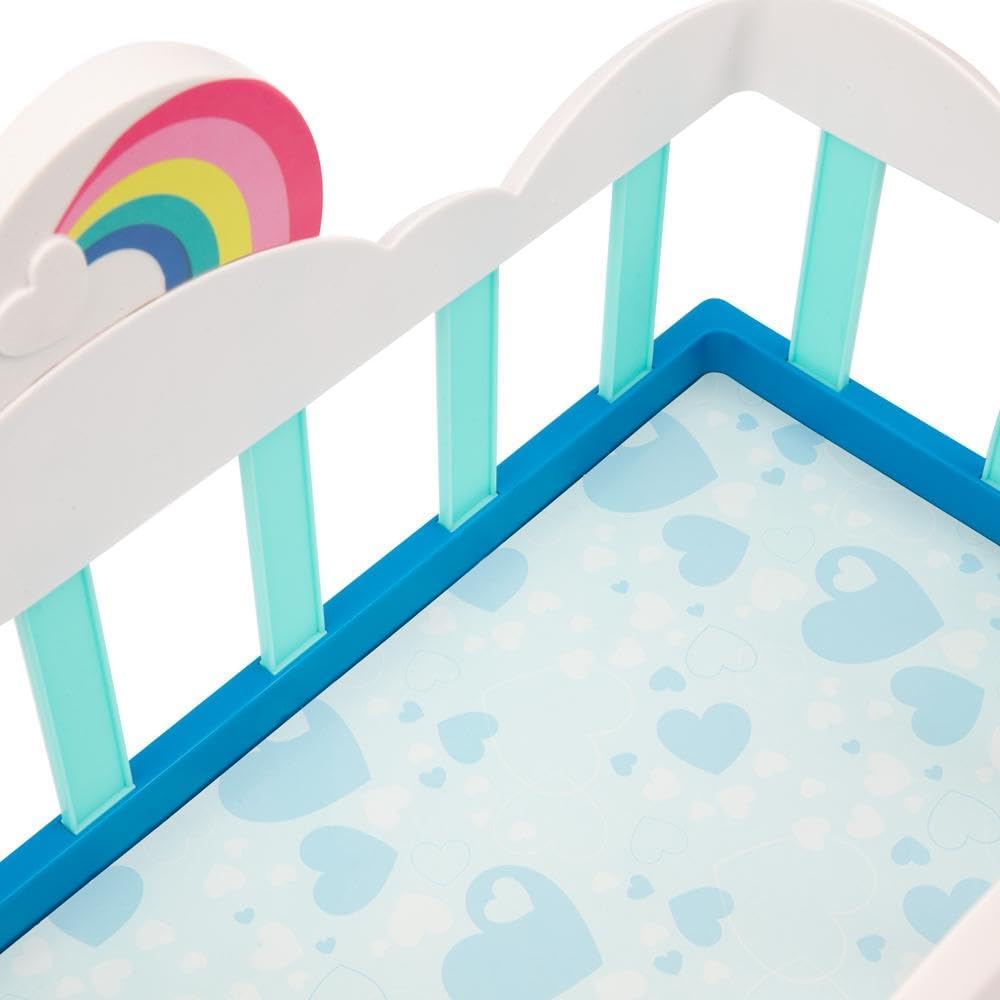 Personalizzato: il lettino è curato nei minimi dettagli con elementi decorativi brandizzati Cicciobello