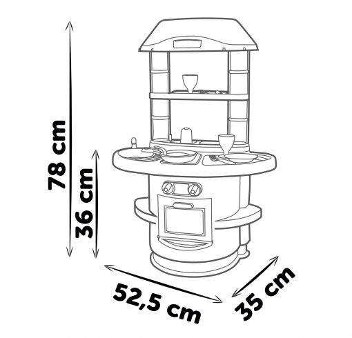 Con il suo design realistico, include forno, lavello, piano cottura, frigorifero e tanti accessori per preparare pranzi e cene deliziose.