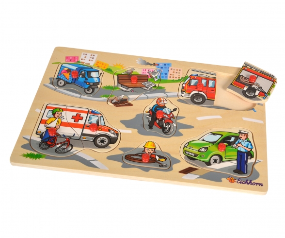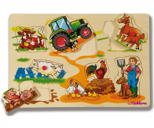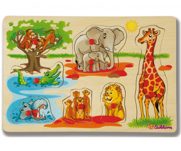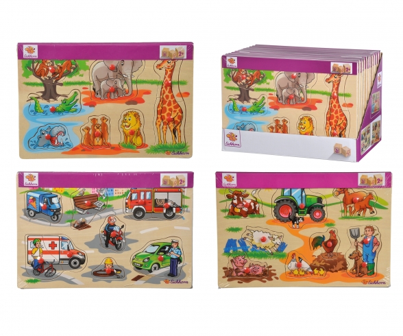 Con il puzzle Eichhorn è possibile comporre diversi motivi in formato 30×20 cm. Che si tratti di veicoli, animali da safari o fattorie, tutti troveranno qui il motivo adatto. I pezzi grandi, i motivi centralizzati e la cornice in legno facilitano il corretto posizionamento dei pezzi e garantiscono il divertimento del puzzle! Per la realizzazione del puzzle Eichhorn viene utilizzato esclusivamente legno FSC® 100% proveniente da foreste sostenibili. Adatto ai bambini a partire da un anno di età