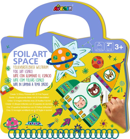 Esplorate l’affascinante vastità del cosmo con il set artistico in alluminio “Spazio”! Questo entusiasmante set offre ai bambini un modo creativo per scoprire i misteri dell’universo attraverso l’arte, con trasferimenti luminosi e disegni a tema spaziale.