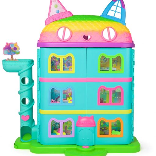 Esplora l”incantevole ambientazione della Casa delle bambole per festeggiamenti di Gabby, un capolavoro a tema arcobaleno alto 60 cm. Scatena la creatività con il personaggio giocattolo di Gabby di 8,8 cm, i mobili della casa delle bambole e 10 accessori, come un gabinetto a forma di gattino, un pianoforte e console da DJ e tanto altro. Senti il ritmo alla console da DJ e utilizza il Gat-ascensore per accedere a sei stanze e a un”area giochi sul tetto. Metti le scatole nella torre e premi il pulsante per scoprire tesori segreti, poi apri la casa delle bambole per ascoltare 6 effetti sonori della serie. I giocattoli Gabby”s Dollhouse per bambini e bambine sono degli ottimi regali per i fan della serie Netflix di successo e per chi adora costruire ambientazioni di fantasia con le case delle bambole. Rendi indimenticabile la loro prima casa delle bambole con tantissimi adorabili personaggi giocattolo, accessori e mobili da collezionare e sistemare all”interno. Costruisci il tuo universo di gioco con i kit essenziali per la casa, come una cucina o una stanza della musica, e tanti oggetti da collezionare, come una strepitosa nave da crociera giocattolo, una piscina a tema sirena e il set di gioco Salone per feste (una soffitta della casa delle bambole con pista di pattinaggio al coperto), nonché i graziosi balconi della casa delle bambole con mini giocattoli tattili, che offrono un”esperienza sensoriale soddisfacente e si integrano con entrambe le versioni della casa delle bambole. Include: 1 casa delle bambole, 1 personaggio Gabby, 10 accessori, 2 scatole con sorpresa, 1 foglio di adesivi