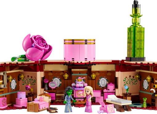 I bambini possono scansionare il codice QR nascosto nel set per accedere a contenuti speciali LEGO® Wicked e cantare insieme alla canzone “Popular” del film. Tutto ciò che i bambini devono fare è posizionare le miniature sul piatto girevole per farle ballare a ritmo di musica. Dopo aver giocato, il dormitorio può essere ripiegato e trasformato nel forziere di Glinda, che può essere chiuso con una chiave. Quando è ripiegato in uno scrigno, il modello di questo set LEGO® Wicked da 740 pezzi è alto 20 cm, largo 18 cm e profondo 11 cm.