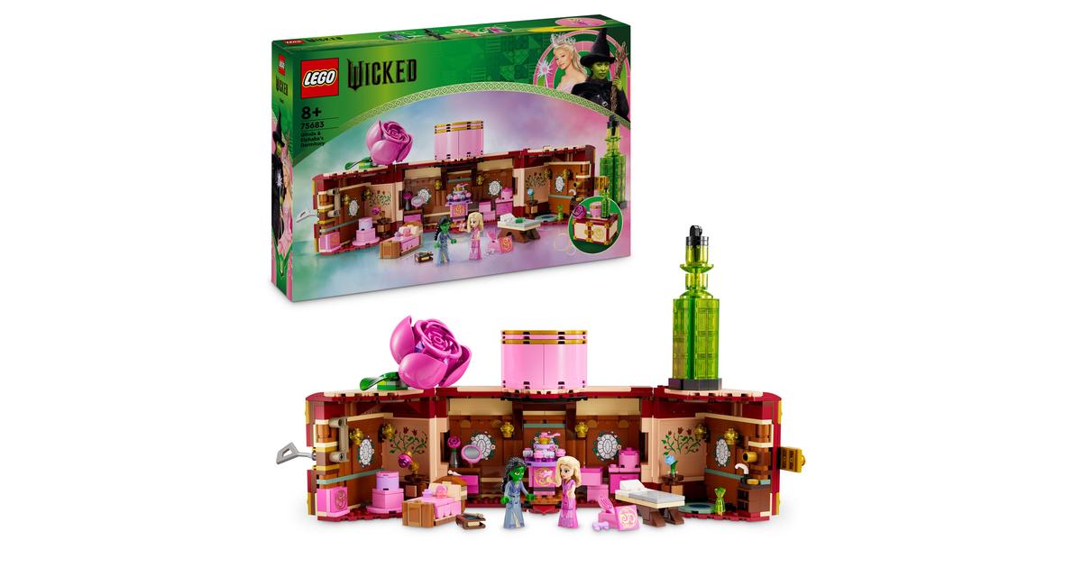 Il dormitorio di Glinda ed Elphaba (75683) trasporta bambine e bambini dagli 8 anni in su in una scena particolarmente popolare del film Wicked. Questo regalo per bambini è un grande playset da collezionare, che raffigura la leggendaria scena del film in cui le ragazze diventano amiche. Questo playset comprende un forziere che può essere aperto. Si scopre così una casa delle bambole, che rappresenta il dormitorio delle ragazze alla Shiz University. I numerosi accessori di questo playset permettono ai bambini di rievocare la scena in cui Glinda promette di rendere Elphaba “popolare”. Come nel film, le due figure indossano un pigiama. Altri 2 abiti invitano i bambini a vestire le figure per la giornata scolastica.