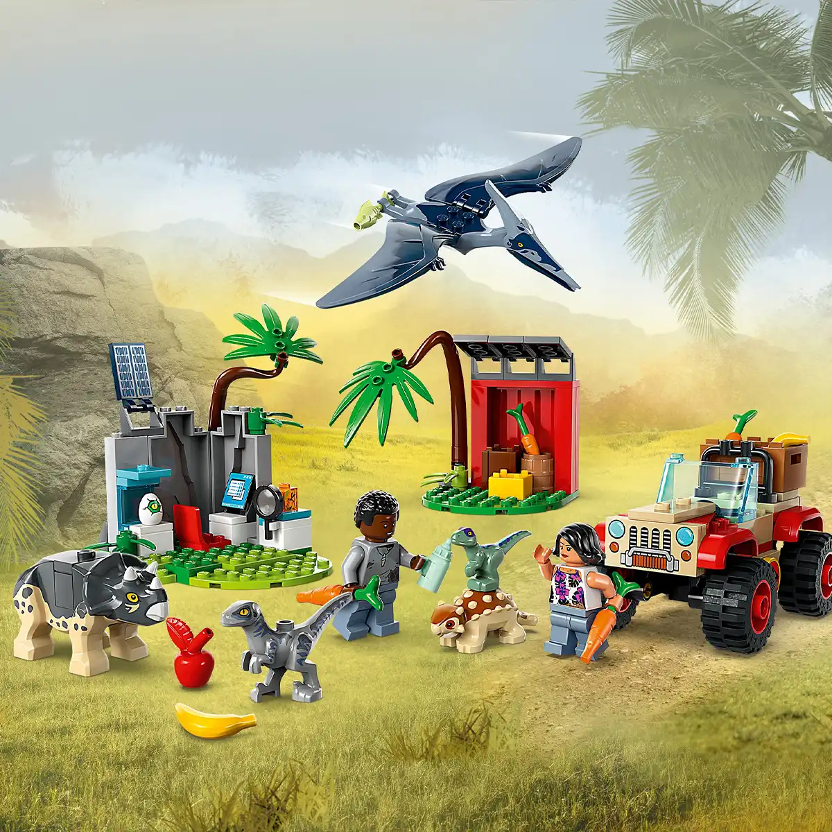 I giovani fan dai 4 anni in su possono imparare a costruire con questo set e giocare con i baby dinosauri e prendersene cura. Il Centro di soccorso per cuccioli di dinosauro LEGO® Jurassic World (76963) include un veicolo fuoristrada e un’area di ricerca con parete di caverna (entrambi i modelli con elemento di costruzione iniziale), oltre a una stazione di alimentazione, 2 minifigure e 3 cuccioli di dinosauro: un Anchilosauro, un Triceratopo e un Velociraptor. Un altro piccolo Velociraptor e uno pteranodonte adulto sono un ottimo gioco per i bambini.