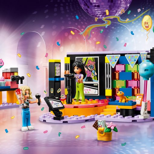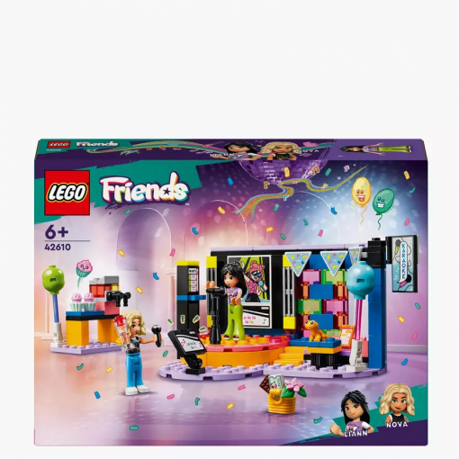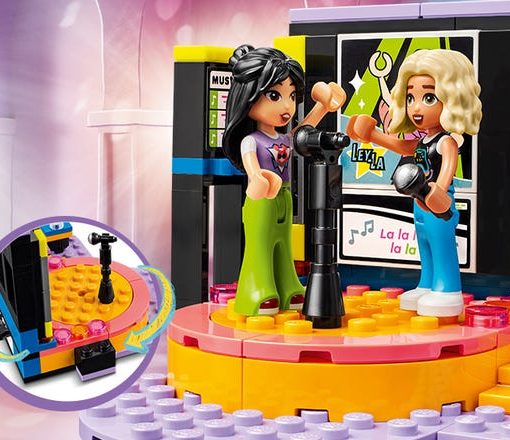 Il set LEGO® Friends Karaoke Party (42610) è un fantastico regalo per bambini e bambine dai 6 anni in su che amano i giochi di ruolo e cantare mentre giocano. Per una festa di compleanno a tema karaoke, il set include un palco girevole, microfoni, un angolo salotto e una macchina per granite. 2 mini-doll LEGO Friends con volti aggiuntivi che raffigurano le due amiche che cantano, oltre a un geco e tanti accessori completano il set. Il set di costruzione prende vita quando il tuo bambino interpreta la festa di compleanno di Lianna in un fantasioso gioco di ruolo. I bambini possono ruotare il palco con l’aiuto dell’ingranaggio e fingere che i personaggi (con i loro volti canterini) cantino nei microfoni. Quando le amiche hanno bisogno di una pausa, si concedono un granita e dei cupcake. Forse ora Nova può consegnare il suo regalo di compleanno a Liann?