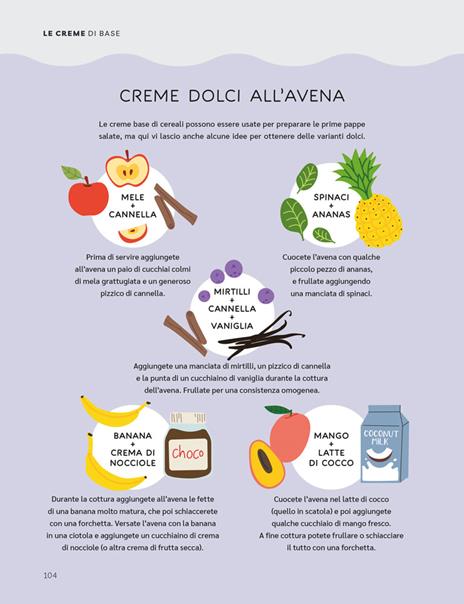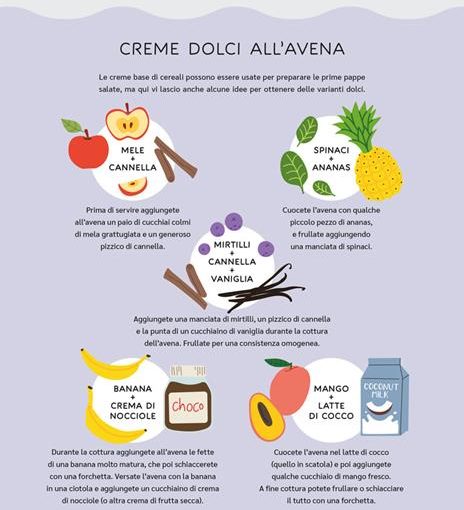 L’alimentazione complementare è un percorso da intraprendere insieme, adattandosi alle esigenze del bambino, senza frustrazioni e paura di sbagliare. Questo vero e proprio atlante vi permetterà di orientarvi tra le tipologie di svezzamento, attraverso tre fasi: dalla pappa, ai pesti e alle puree, fino al finger food e alla costruzione di menu con piatti bilanciati… per avere il controllo dei pasti del proprio bambino e poterli pianificare. Nel libro troverete tantissime ricette e splendide foto, e poi: schede tecniche sulla dispensa; come tagliare gli alimenti in sicurezza; allergeni; metodi di conservazione; porzioni; il biologico; l’importanza di bere…