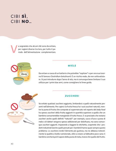«Al centro di tutto c’è il piccolo. Sarà vostro figlio a farvi capire quando è pronto a provare certi alimenti, i suoi gusti, le preferenze, mostrerà la sua voglia di assaggiare e sperimentare. E mostrerà quando è sazio.»