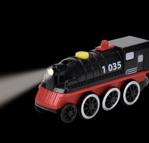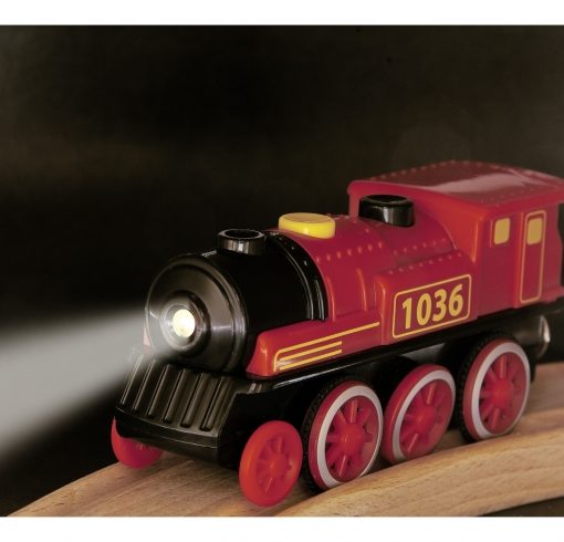 La locomotiva elettrica della Eichhorn ha 4 ruote motrici e le seguenti funzioni: marcia avanti, retromarcia, avviamento e luce. Il vantaggio della trazione integrale è che la locomotiva è molto potente e può affrontare le salite più ripide anche con molti vagoni. Il treno è lungo 11 cm e può essere spostato sulle ferrovie dell’Eichhorn e su molte altre ferrovie in legno. La locomotiva viene fornita con un LR03 da 1,5 V, batteria inclusa. Adatto a bambini dai 3 anni in su.