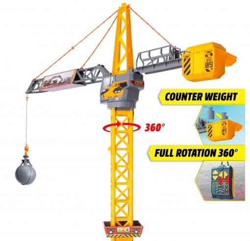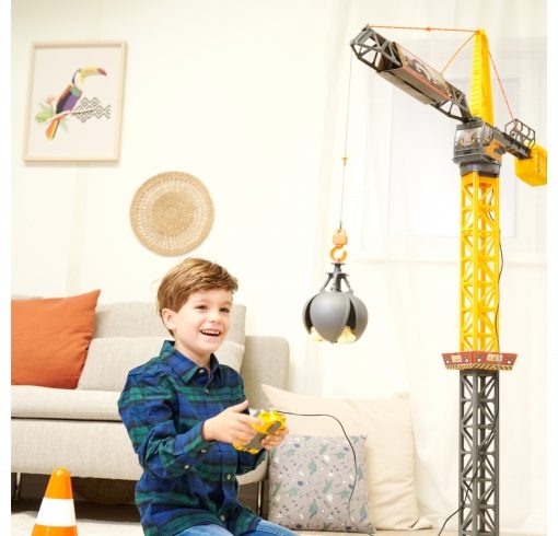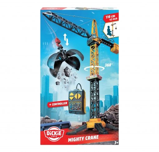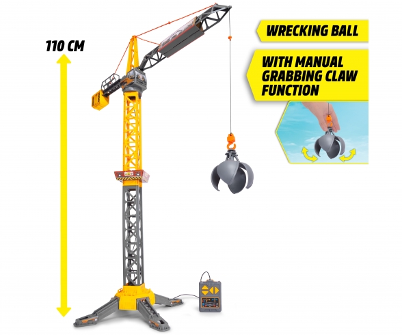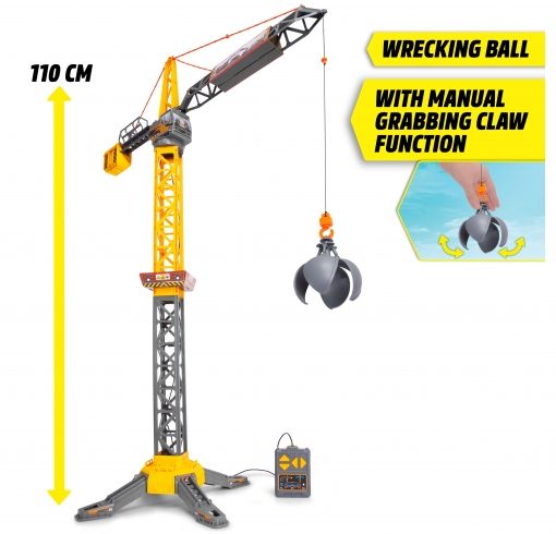 Dickie Toys – Mighty Crane (110 cm) – grande gru giocattolo con rotazione di 360° e palla da demolizione con funzione di presa, gru giocattolo per bambini dai 3 anni con telecomando a cavo