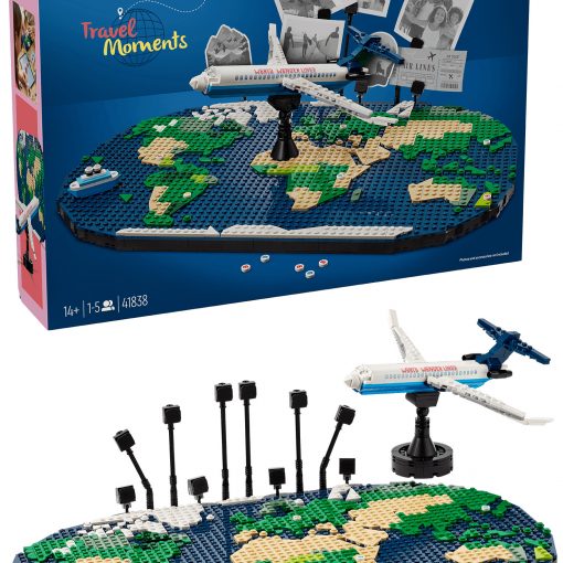 Travel Memories (41838) è un fantastico set da costruire e giocare con un mappamondo giocattolo che offre un’esperienza di costruzione creativa per bambini dai 14 anni in su o per tutta la famiglia. Questo fantasioso playset LEGO è un ottimo regalo per i giramondo e le famiglie avventurose che amano viaggiare e pianificare nuove avventure. Il set comprende una mappa del mondo costruibile, un aereo, 4 micromodelli di veicoli, 20 mattoncini location, 10 portafoto e 5 libretti con le istruzioni di costruzione. Le famiglie possono condividere le loro esperienze di viaggio preferite e sognare viaggi futuri quando costruiscono il jet Wonderliner e la mappa costruibile. La mappa può mostrare i paesi visitati o i viaggi in programma. Ad ogni avventura si aggiunge qualcosa! Questo playset LEGO per gli appassionati di viaggi è un regalo e un’idea regalo per la famiglia e offre un’attività creativa con tanti bei ricordi. Inoltre, voi e i vostri figli potete sfruttare al meglio i vostri playset con l’app LEGO Builder. Con l’app potete costruire insieme, zoomare e ruotare le viste 3D del vostro modello, monitorare i progressi di costruzione e salvare tutti i vostri set in un unico posto. Con il getto e i portafoto, il mappamondo giocattolo misura 14 cm di altezza, 49 cm di larghezza e 31 cm di lunghezza. Contiene 1231 pezzi.