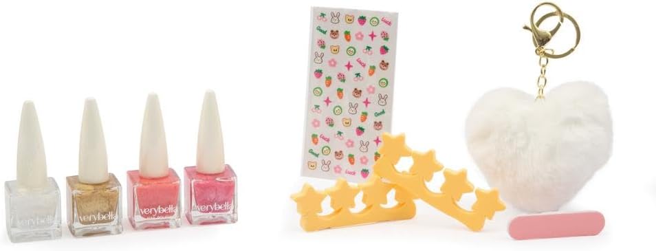 Accessori glamour, include un portachiavi a forma di cuore e stickers colorati per decorare le unghie aggiungendo un tocco divertente e personalizzato al tuo look