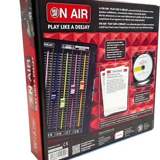 On Air – Play Like a Deejay è il gioco ufficiale di Radio Deejay, nato da un’idea di Francesco Lancia: in questo party game dalle meccaniche che mescolano bluff, improvvisazione e creatività, i giocatori vestono i panni di speaker radiofonici e contemporaneamente ascoltatori!