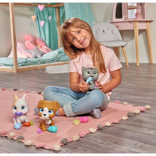 – Con tre sorprese – oltre al gattino alto 15 cm, il set contiene tre sorprese per accudire e nutrire il gattino e un certificato di adozione su cui scrivere.