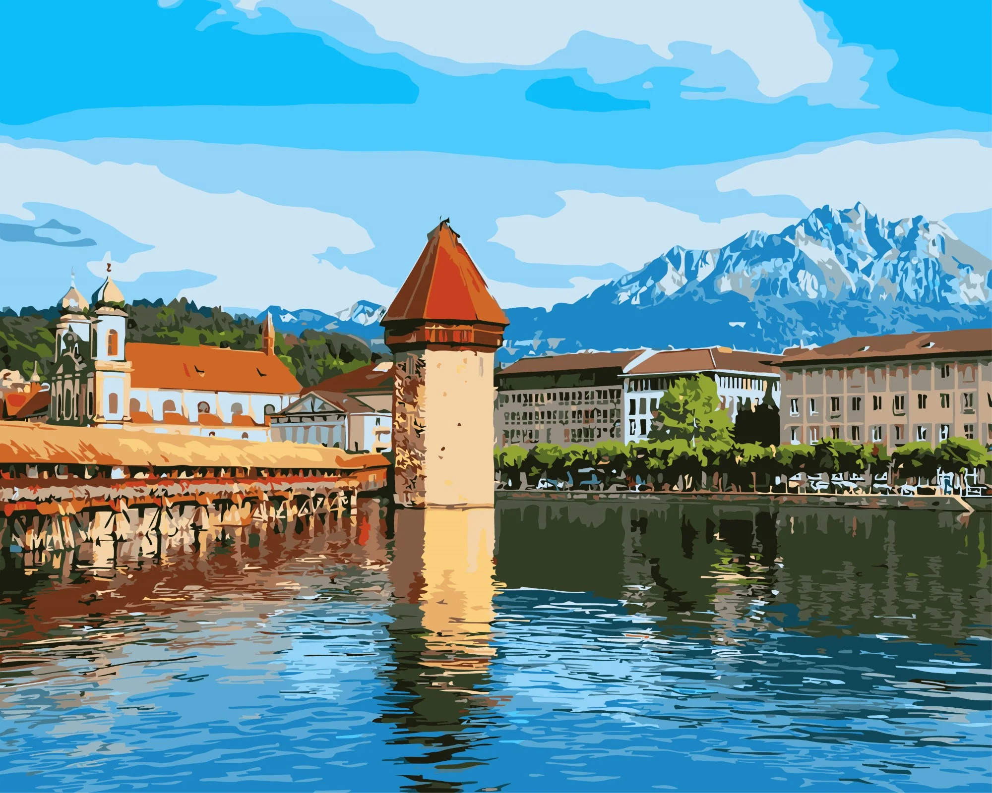 Porta a casa il fascino delle città svizzere con il kit Colorelle® – Ponte della Cappella a Lucerna. Grazie al sistema “Paint by Numbers”, anche chi non ha esperienza può realizzare un dipinto dettagliato e suggestivo, rilassandosi e dando libero sfogo alla propria creatività.