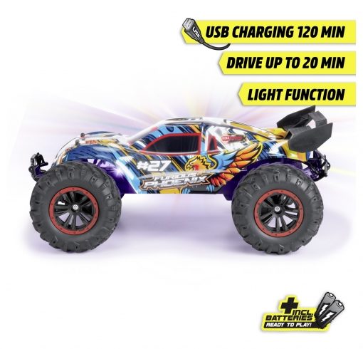 • Incl. 2 batterie R6 da 1,5 V per il trasmettitore, 1 batteria agli ioni di litio da 7,4 V 500 mAh nel veicolo