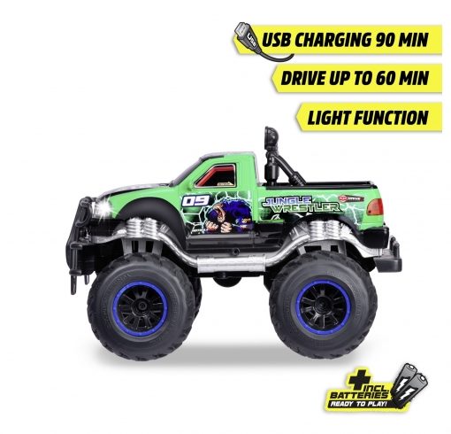 Dickie Toys – Auto RC Jungle Wrestler Ford F150 (30 cm) – Monster Truck telecomandato da 6 anni con luce – Auto telecomandata per bambini, 10 km/h, telecomando da 2,4 GHz, incl. batterie e batteria ricaricabile