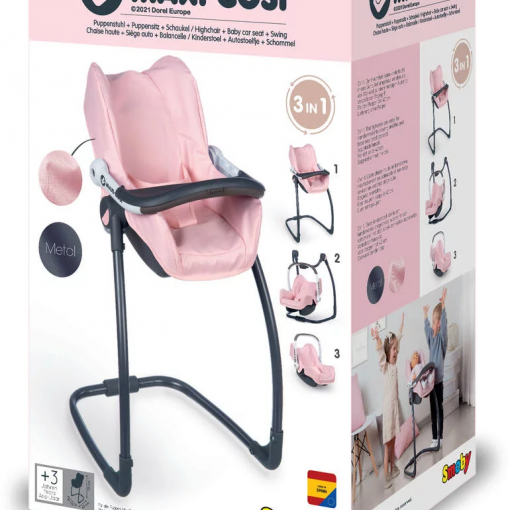 Con le sue funzioni da sedia con tablet, altalena e seggiolino auto, questo prodotto ha tutto ciò di cui avete bisogno per prendervi cura della vostra bambolina. Dal pasto al pisolino, ci sono molte opzioni di gioco disponibili. Il vostro bimbo può coccolare la sua bambolina per ore! Questo accessorio per bambole è leggero e facile da trasportare.