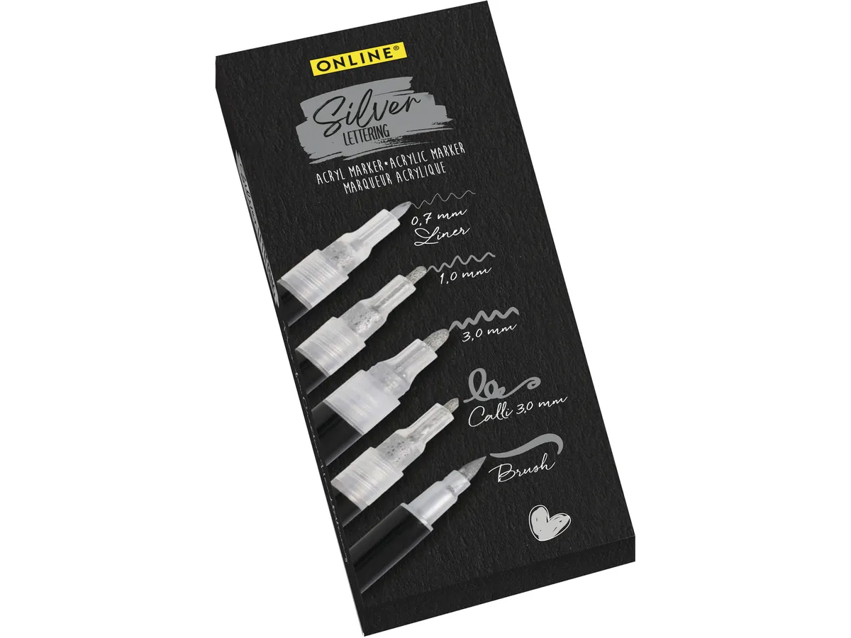 SET PENNE SILVER PER LETTERING PACK DA 5 – ONLINE