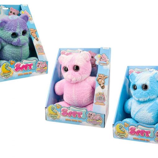 Caratteristiche principali: – Dimensioni: Misura 28 cm, perfetto per essere abbracciato e trasportato ovunque. – Materiale speciale: Realizzato in tessuto morbido ed estensibile, l’orsacchiotto può essere allungato e manipolato, offrendo un’esperienza di gioco interattiva. – Effetto luminoso: Brilla al buio, aggiungendo un tocco di magia ai momenti di gioco e relax serali. – Età consigliata: Sicuro e ideale per bambini dai 3 anni in su. – Articolo assortito: Ogni orsetto è unico e viene selezionato casualmente, garantendo una sorpresa speciale.