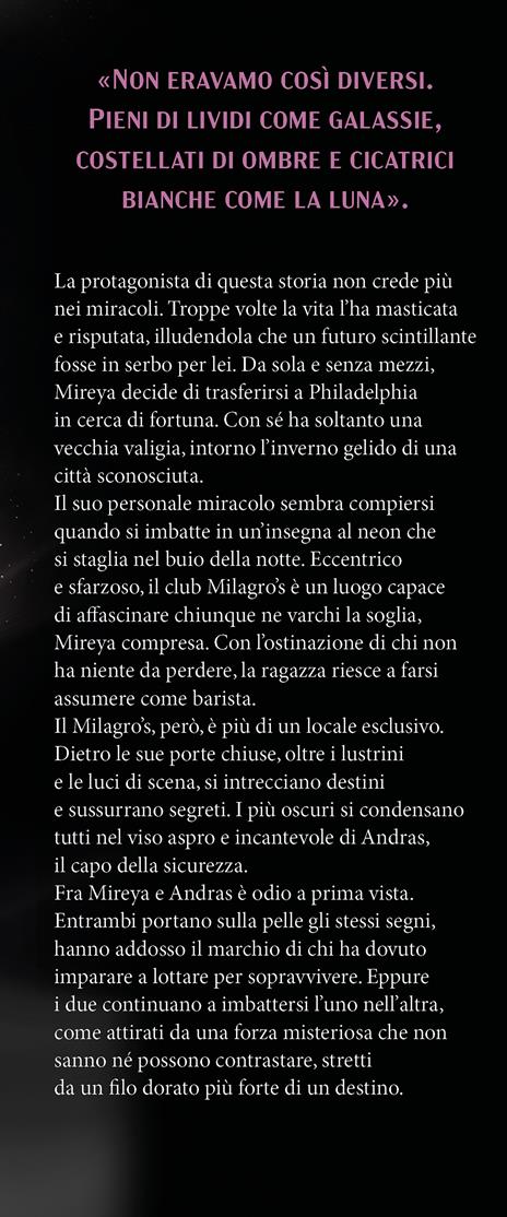 «Non eravamo così diversi. Pieni di lividi come galassie, costellati di ombre e cicatrici bianche come la luna».