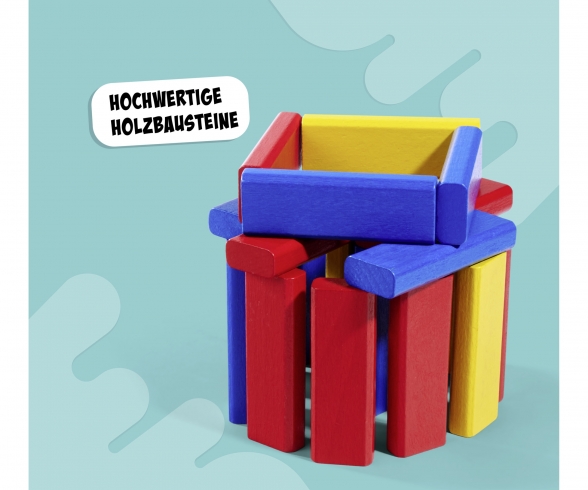 Accompagna i più piccoli nel loro viaggio di scoperta adatto ai principianti con tre volte il divertimento in una sola scatola! Promuove giocosamente l’azione creativa e abile nel mondo delle forme e dei colori – ideale per i bambini giocosi e come arricchimento educativo negli asili nido e negli ambienti Montessori. Non importa se dimostri le tue abilità con la colorata torre oscillante, ti diverti a costruire case creative o alleni le tue abilità motorie con il serpente colorato, questo divertimento di alta qualità realizzato con blocchi di legno e vernici atossiche è adattato esattamente alle esigenze dei giovani costruttori. Questi giochi promuovono attivamente la comprensione e l’attenzione del colore, creando al tempo stesso le primissime esperienze di successo in turni di gioco a misura di bambino.