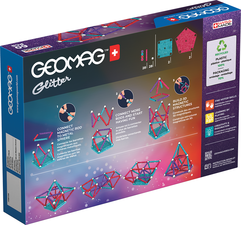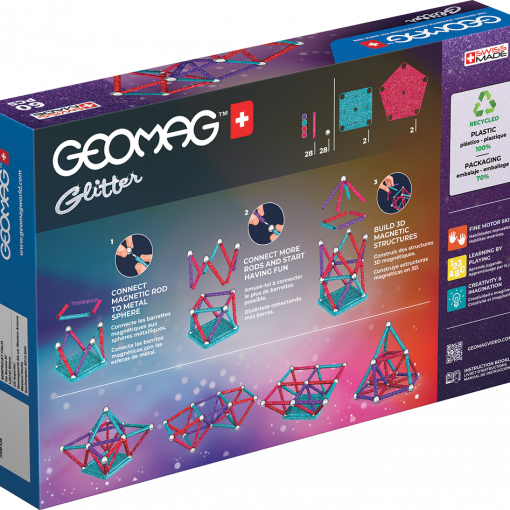 Geomag è ideale per sviluppare la creatività, la logica e le capacità motorie dei bambini. Questo giocoso set di costruzioni Geomag Glitter permetterà al vostro bambino di fare, disfare e creare ogni sorta di costruzioni divertenti!