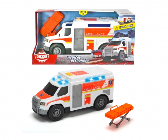 Dickie Toys – Medical Responder – Ambulanza grande 30 cm con barella, luci e suoni, portellone posteriore apribile, batterie incluse per bambini dai 3 anni in su, macchinina giocattolo