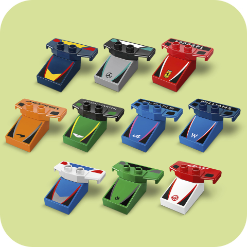 • Più azione F1® ad alta vel = ocità: cerca gli altri set costruibili LEGO® Formula 1® (disponibili separatamente) per gareggiare con tutta la famiglia