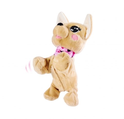 – Reagisce alla voce – il cucciolo di Chihuahua ascolta i comandi dei bambini e reagisce alla voce come un vero cane. Si siede, si mette a sedere, si alza sulla testa e può anche cantare. Risponde a un totale di 12 comandi vocali diversi.