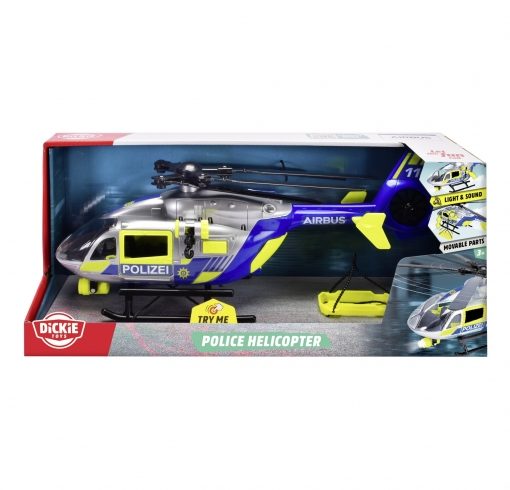 Dickie Toys – Elicottero della polizia Airbus H145 (36 cm) – elicottero giocattolo con elica caricabile, luce, suono e accessori per bambini dai 3 anni, comprese le batterie