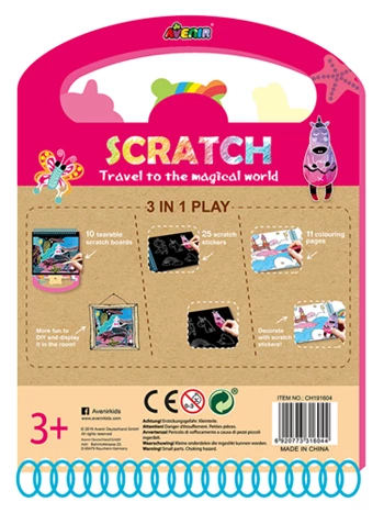 Il blocco Avenir scratches art “Unicorn” è un set artistico che permette ai bambini di realizzare disegni colorati in modo semplice e divertente: basta grattare la superficie nera con l’apposito stick per scoprire motivi vivaci a tema unicorno e fantasia.