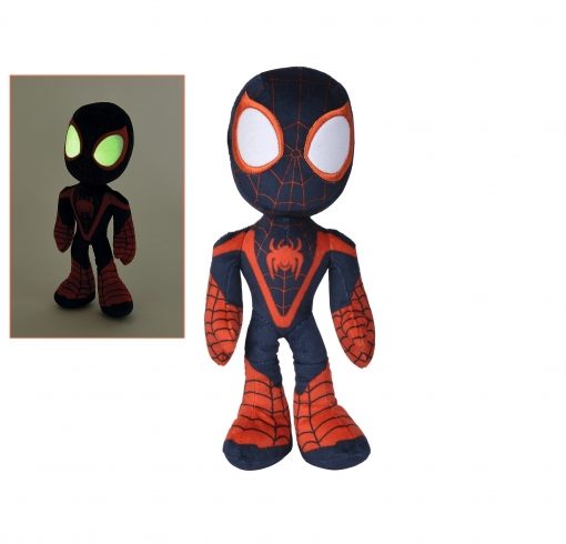 Supereroe da toccare e coccolare! Nella serie “Spidey e i suoi super amici” Spidey vive emozionanti avventure insieme ai suoi amici Ghost Spider e Spin alias Miles Morales e insieme salvano la loro città da pericolosi cattivi. Con il peluche coordinato di Miles Morales, i bambini ora possono coccolare e coccolare il loro eroe televisivo. Miles Morales è alto 25 cm ed è realizzato in morbido tessuto. Una caratteristica speciale sono i loro grandi occhi, che brillano al buio. Il peluche con occhi che si illuminano al buio è adatto ai bambini fin dai primi mesi di vita.