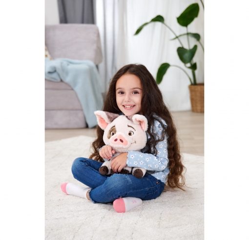 • Progettato con amore – Che si tratti delle soffici orecchie rosa o della macchia scura intorno agli occhi: il peluche con licenza ufficiale Disney assomiglia proprio all’adorabile maialino dell’isola di Motunui.