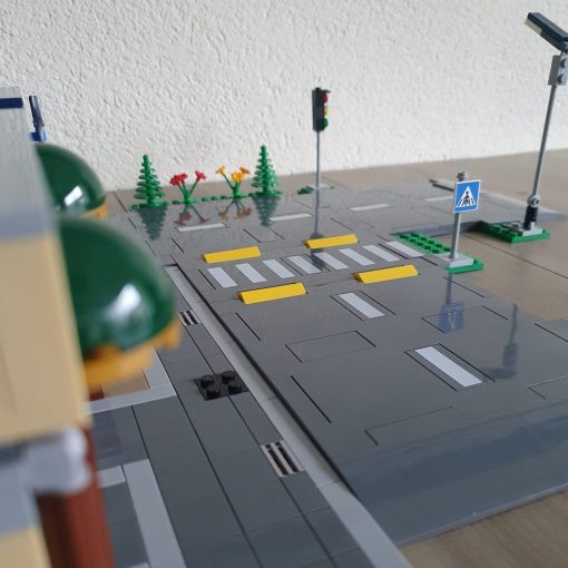 Il set di costruzione LEGO® City “Incrocio stradale con semafori” (60304) contiene lampioni che si illuminano al buio, semafori, segnali stradali e segnaletica orizzontale, dossi, un passaggio pedonale, alberi e vegetazione. Questi elementi fungono da sfondo realistico e consentono ai bambini di ampliare la loro città!