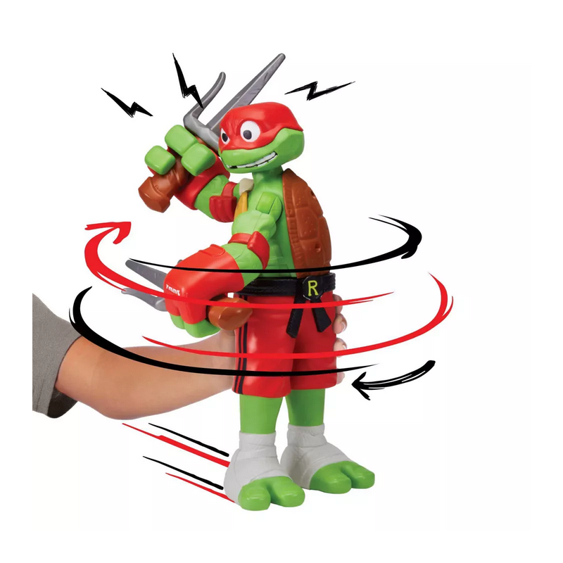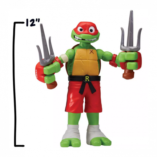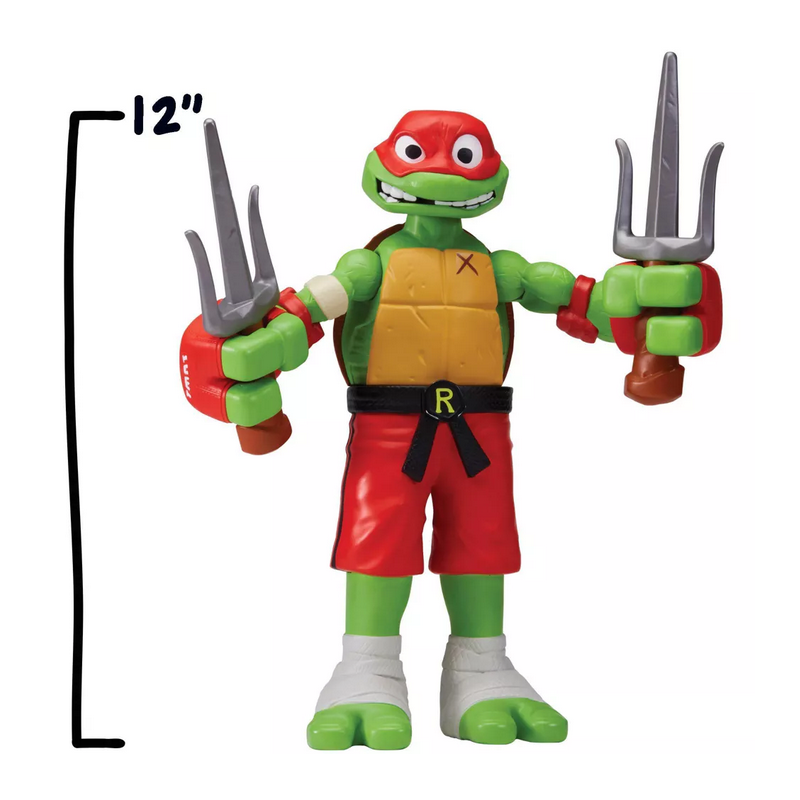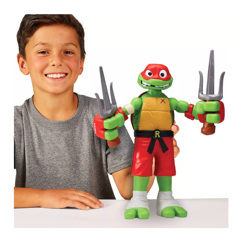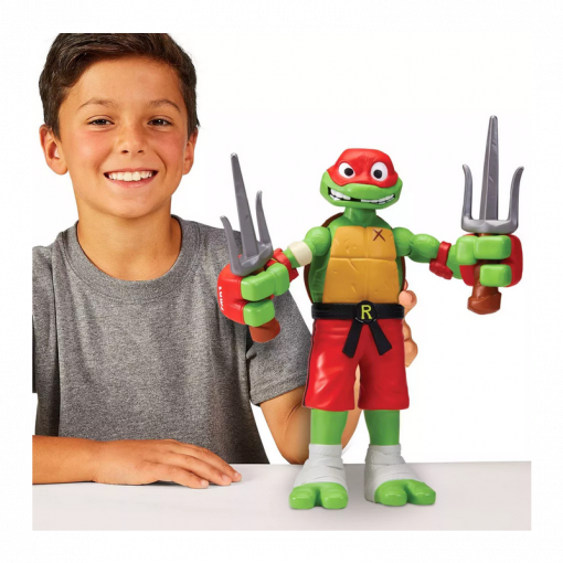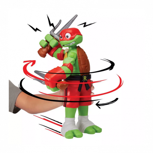 Raffaello in versione gigante da 30 cm con una funzione di combattimento attivabile spostandolo avanti e indietro, potrai farlo sferrare potenti pugni roteando il busto, per un’esperienza di gioco dinamica e coinvolgente.