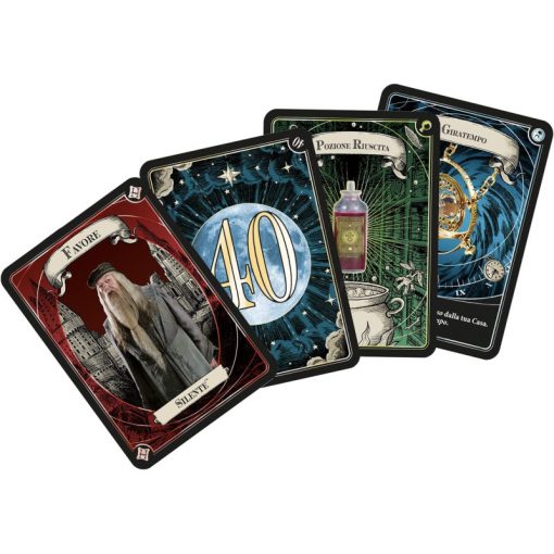 🃏 Componenti ricche e immersive – Include 8 bacchette magiche, carte con sovrastampa dorata, segnalini e un tabellone tematico.